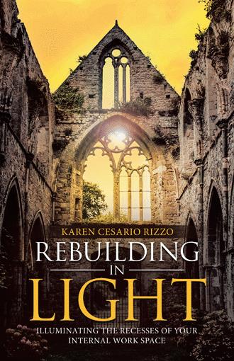 On October 30, 2016, I was shown a vision:: I was shown destruction. Ruins. Fires were out, and there was smoke coming from the ruins. Under the ruins were BRIGHT, BRILLIANT LIGHTS. Th ese beautiful lights of hope were shining brightly through various small holes within the ruins. I heard these words: “Tell them everything will be okay. We will rebuild in light.” Karen Cesario Rizzo, Author, Rebuilding in Light Rebuilding in Light is inspirational, profound, yet lighthearted, with a touch of humor. This book is a must-read to assist in lighting the light within you. At the end of each honest and relatable chapter is a “chapter takeaway”; simple life lessons to inspire you and enlighten your soul. We’ve been given the opportunity to heal and illuminate the recesses of our internal workspace so we may shine our light on others. Our internal workspace. Where we work, think, create, co-create, grow, shift , where we transform. Where we love. Where we are inspired and inspire others. What does your internal workspace look like?